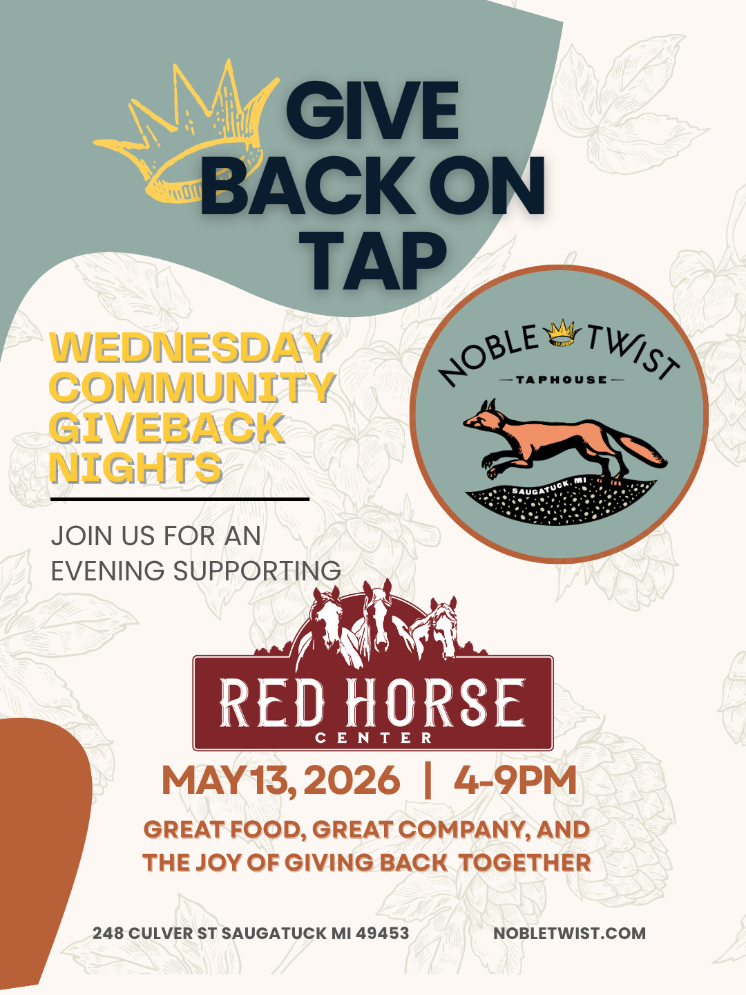 The Red Horse Porch Party is an outdoor event down on the farm in Fennville with art, live music, food, and drink. See our herd, participate in collaborative art stations, view the gallery show, soak up the spring weather, and fresh air. We’ll be serving food from Farmhouse Deli and beer and wine from local producers. We’ll have an art auction and raffle where you can bid on local art, gift card bundles, and unique experiences. Plus, a live music performance from Great Lakes Brass kicking off 5 pm.