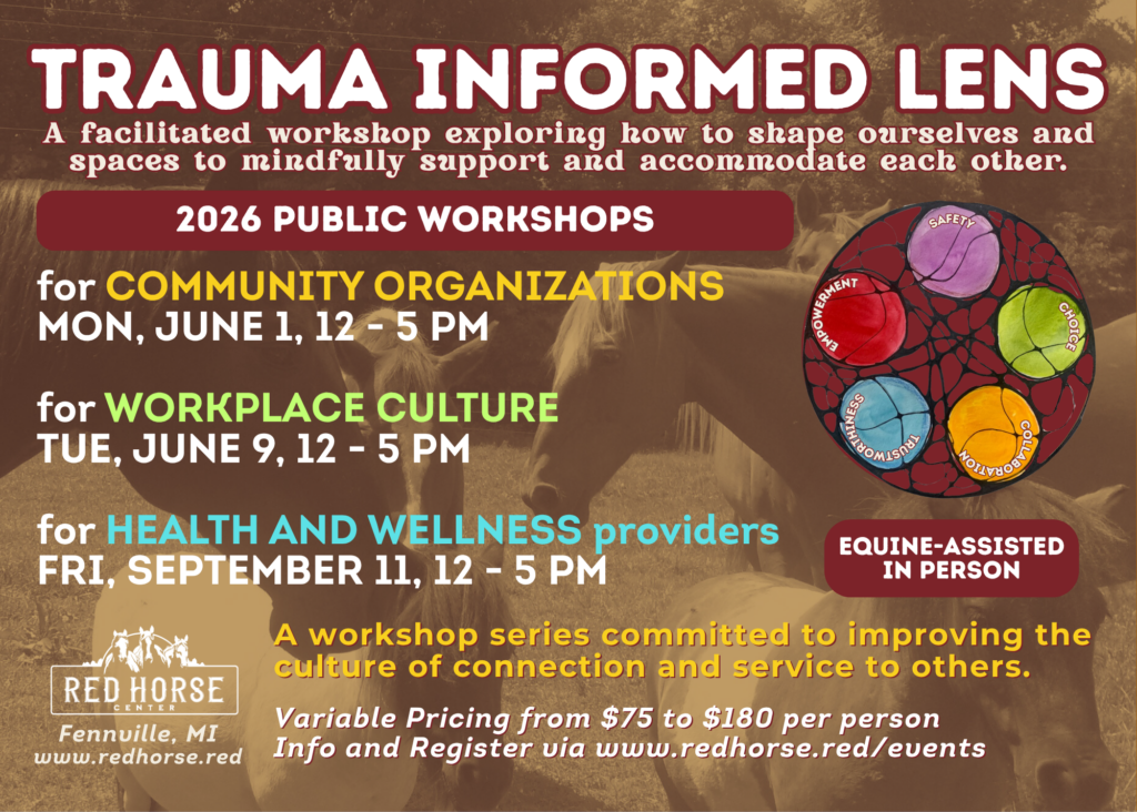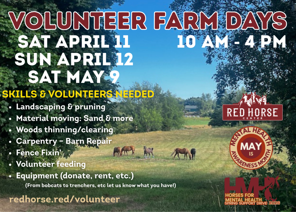 This event is FREE to attend! Donations are welcome, including the raffle, auction, and Horses for Mental Health Campaign. Proceeds from food, drink, Art Club gallery show, and the Red Horse Outpost all help support our mission!